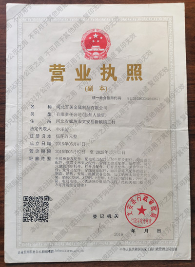 版權(quán)所有:河北百著金屬制品有限公司  技術(shù)支持:高迅網(wǎng)絡(luò) 營(yíng)業(yè)執(zhí)照